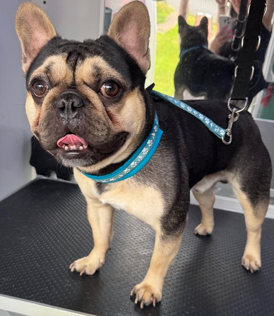 This sweet English Bulldog came in a little nervous but left looking and feeling great after a gentle, calming groom